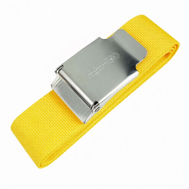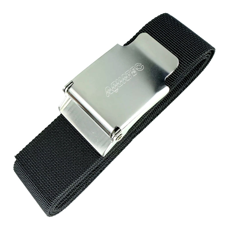 traditional 2" (5cm) wide nylon webbing weight belt with corrosive resistant latch-style quick-release stainless steel buckle is what you need.